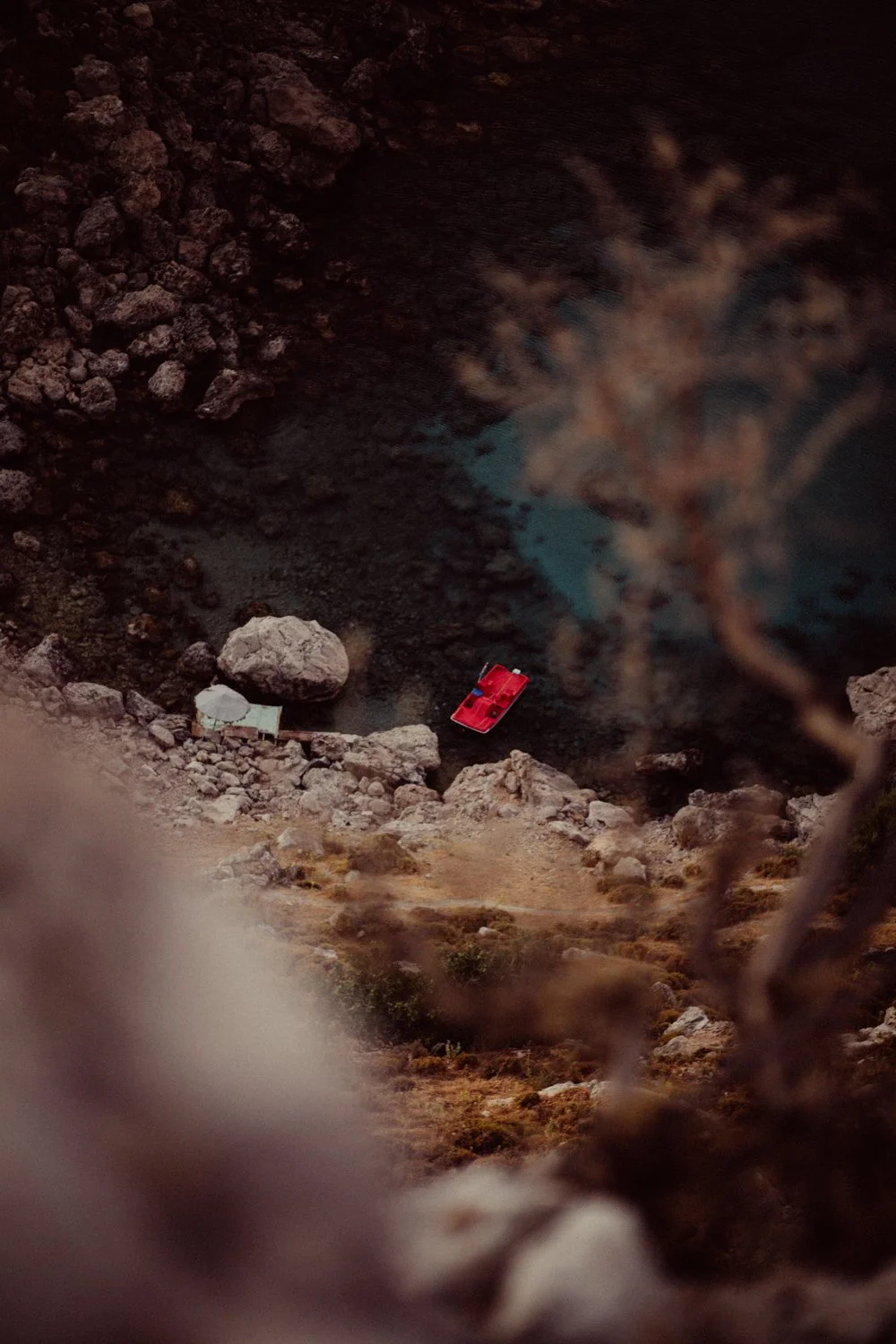Kleines rotes Boot Rhodos Im Vollbildmodus anzeigen