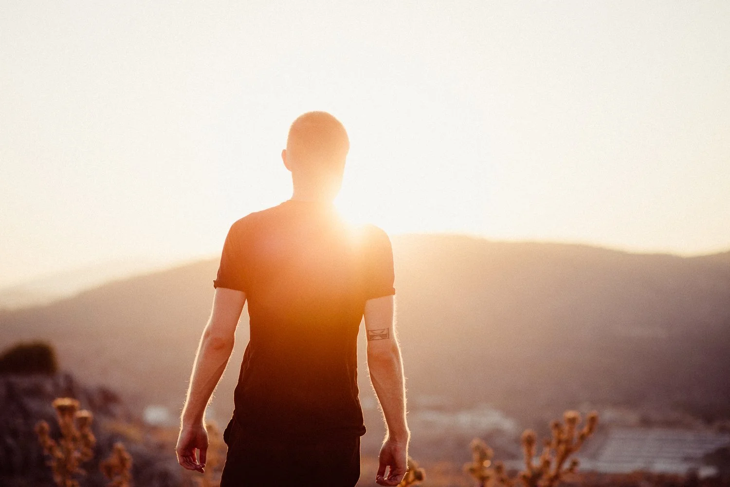 Mann im Sonnenuntergang Rhodos Im Vollbildmodus anzeigen